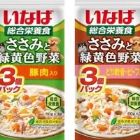 いなばペットフードのわんちゃん用栄養食「ささみと緑黄色野菜」シリーズが新パッケージで登場!おいしい素材を使った栄養満点の食事を愛犬に。ぜひチェック!